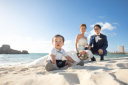抱っこをして、おでこをコツンッとくっつけたポージング♪空と海を背景に、ロマンチックなお写真に(^^♪