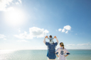 沖縄ならではのシーサーとフレームを組み合わせたお写真♪空も海も砂浜もフレームイン☆
