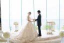 一枚ガラスを使用している為、開放感を感じることが出来ます♪また、お二人を包むような海と空キラキラがさらにすてきなお写真に♪