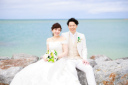 海風に舞うベールが幻想的な一枚。立体感のあるお写真が撮影できます