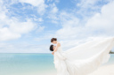 さっそくビーチへ移動し撮影開始!走り出しそうな新郎様がかわいらしい一枚です