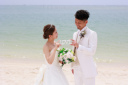 太陽が照らすビーチでは淡く透けるベールの中で幻想的な撮影を♡