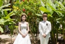 ウェディングドレスに衣装チェンジ。きりりとした視線でバージンロードを歩み進めていくお二人。