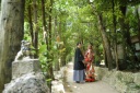 グリーンの樹々をバックに麦わら帽子をかぶってキメポーズ!