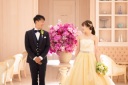 ロングトレーンを海風になびかせながらおでこをこつん♡躍動感ある一枚に。