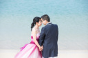 太陽をバックに抱き合ったお二人が映画のような一枚に♪