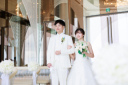 チャペルには真白なウェディングドレスとタキシードで入場♪