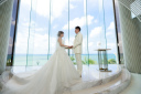 ビーチでのフォトウェディングはウェディングドレスだけではなく、カラードレスも映えます!ブルーの色味がピッタリ合いますね♪