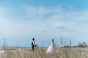 カラードレスへお着替えされて、ビーチ撮影のスタートです!