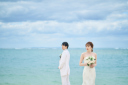 広い大きな海を眺めて、遠くからの撮影!小さく写るお二人がより大きな海を感じます。