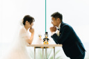 手を取り合い愛を誓い合う瞬間・・シルエットが幻想的です★