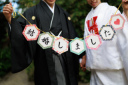 撮影小物のフォトフレームと沖縄感あふれるシーサーを使ってお二人らしく沖縄らしく!