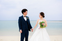 海をバックに撮影!エメラルドグリーンの海がとても綺麗に映えます♡