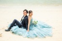 先にビーチへ!アラハビーチでは、浜辺だけでなく緑が豊富なスポットもございます★お2人のお衣裳と空と緑、相性バッチリです!