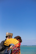 ビーチでベールを使ってお撮影♪風になびかせて自然でお洒落な写真を撮りましょう♪