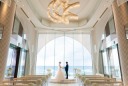 お互い見つめ合ったところをパシャリ☆サンドベージュの館内に純白のお二人がとても映えます!!