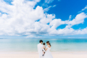 ご家族3人で海を背景にした1枚!青い海に白タキシードとウエディングドレスがお似合いです♪