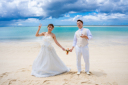 ビーチで撮影スタート!白いタキシードとウェディングドレスがとても似合っています!(^^)!
