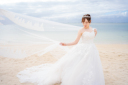 砂浜に座ることでドレスの裾がふんわり広がりかわいらしい雰囲気のお写真が撮影できます!