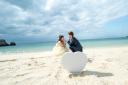沖縄の綺麗な海をバックに指輪交換のシーンを撮影できます(^^♪