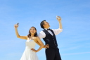 ビーチでの撮影スタートです!おふたりで沖縄の空を見上げパシャリ✵