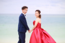 指輪交換のシーンを沖縄の海をバックに撮影(^^)/