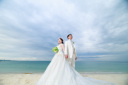 ビーチでの撮影スタート!後ろ姿からでもおふたりの仲の良さが伝わってきます