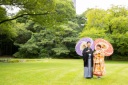 タキシード×打掛とこれまた個性あふれる組み合わせ!背景との相性もばっちりです