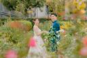 鮮やかな銀杏の黄色がウェディングドレスを一層引き立てます…
