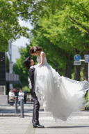 映画のようなシチュエーションで素敵ですね♪照れた表情や驚いたそぶりなどを入れることでよりおふたりらしさも演出できます☆