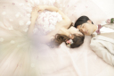 柔らかい印象の背景に新婦様のお澄まし表情が素敵です!