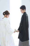 白無垢でしっとり撮影した後は、スタジオに移動して色打掛でたのしく!