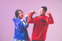 カラードレスにドライフラワーを合わせて今っぽく。オシャレな印象に。向かい合いのお顔隠しショット、かわいいです♡