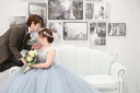 まずはウェディングドレスから撮影開始。プリンセスラインのボリュームあるドレスをお選びいただきました!