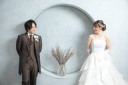 ご新郎様が秋の葉に手を添えているご新婦様を包み込むようなすてきな写真になりました。