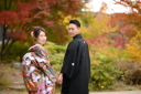 紅葉に囲まれて、その中心で見つめあうご新郎ご新婦様を撮影しました!