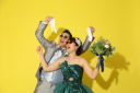 ちょうど良いカジュアル感のノースリーブドレスとグリーンチェックのタキシード!組み合わせがおしゃれ♪