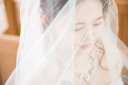 ロングベールからのぞくとても美しいドレス姿のご新婦様