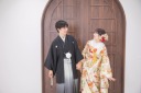 和装はスタジオでも引き続き撮影しました。定番の円形ニッチの前で見つめあいポーズ☆