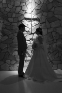 灯籠と木々に囲まれてお二人とも白で合わせていただき静寂な時間がながれました。