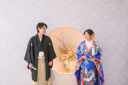 白打掛から色打掛に掛け替えて、石壁の前でかっこよい印象に