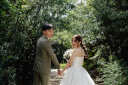 春の空気感が出ているような、優しいお写真、お花の向こうにいる新婦様の表情も柔らかく素敵な1枚のお写真に♡
