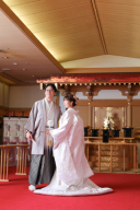 ポーズは型物で!綿帽子がとてもお似合いのご新婦様♡ご新郎様の優しい笑顔もあいまって撮影中ずっと素敵でした♡