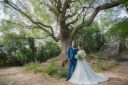 森を抜けると現れる海!砂浜でお散歩してるお二人♡新郎さん先導お願いします♪