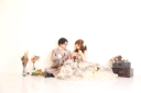 2人の自然な表情を出すためにソファーで一休みのところをパシャリ