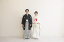 スタジオ内和室での1枚、ふたりの雰囲気にぴったりの和装です。