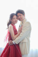 ご新婦様がご自身の腕をご新郎様の肩に伸ばし、ご新郎様もご新婦様の腰に手を。お互いにハグをしてるように感じますね❤