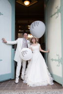 白を基調としたチャペルスタジオに白コーデのお二人が映えます!ボリューミーなバックスタイルがとても豪華です。
