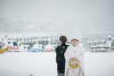 色鮮やかな和傘に囲まれた空間で、おふたりの「好き」を詰め込んだ記念ショット。応援グッズとともに、晴れの日を“自分たちらしく”楽しむ笑顔が印象的な一枚です。