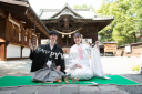 紋付の黒と白無垢の白が5月の清々しい新緑に映えます!